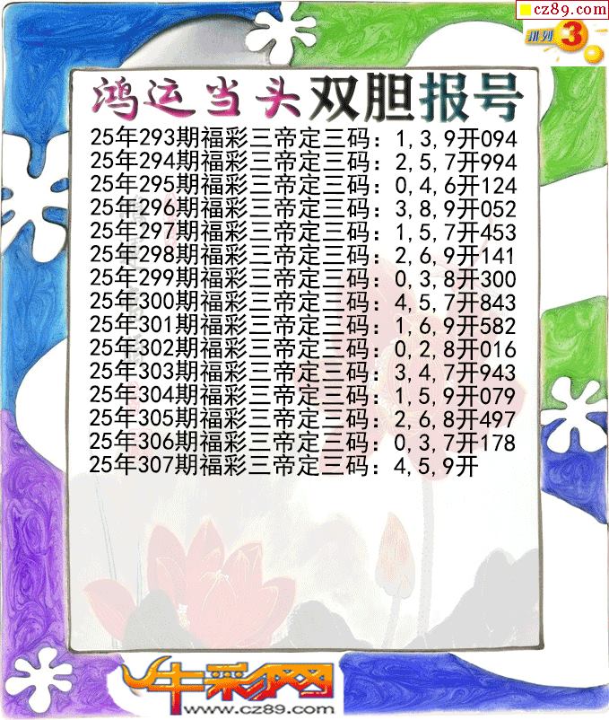 鸿运当头双胆报号307期体彩P3图谜